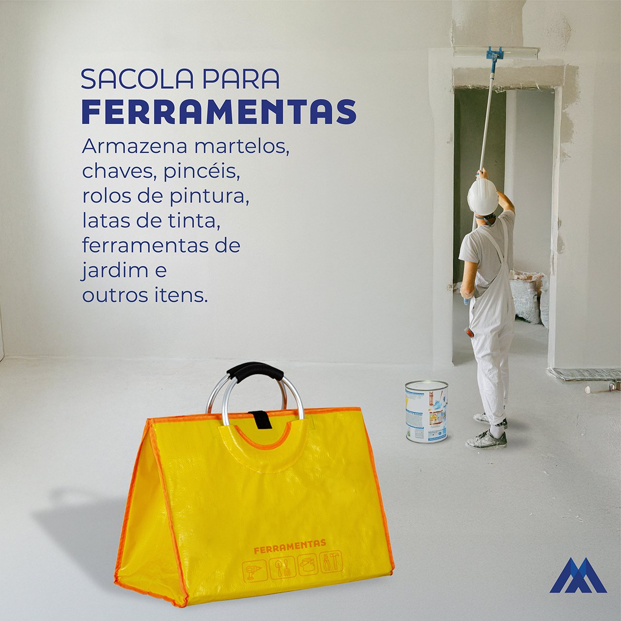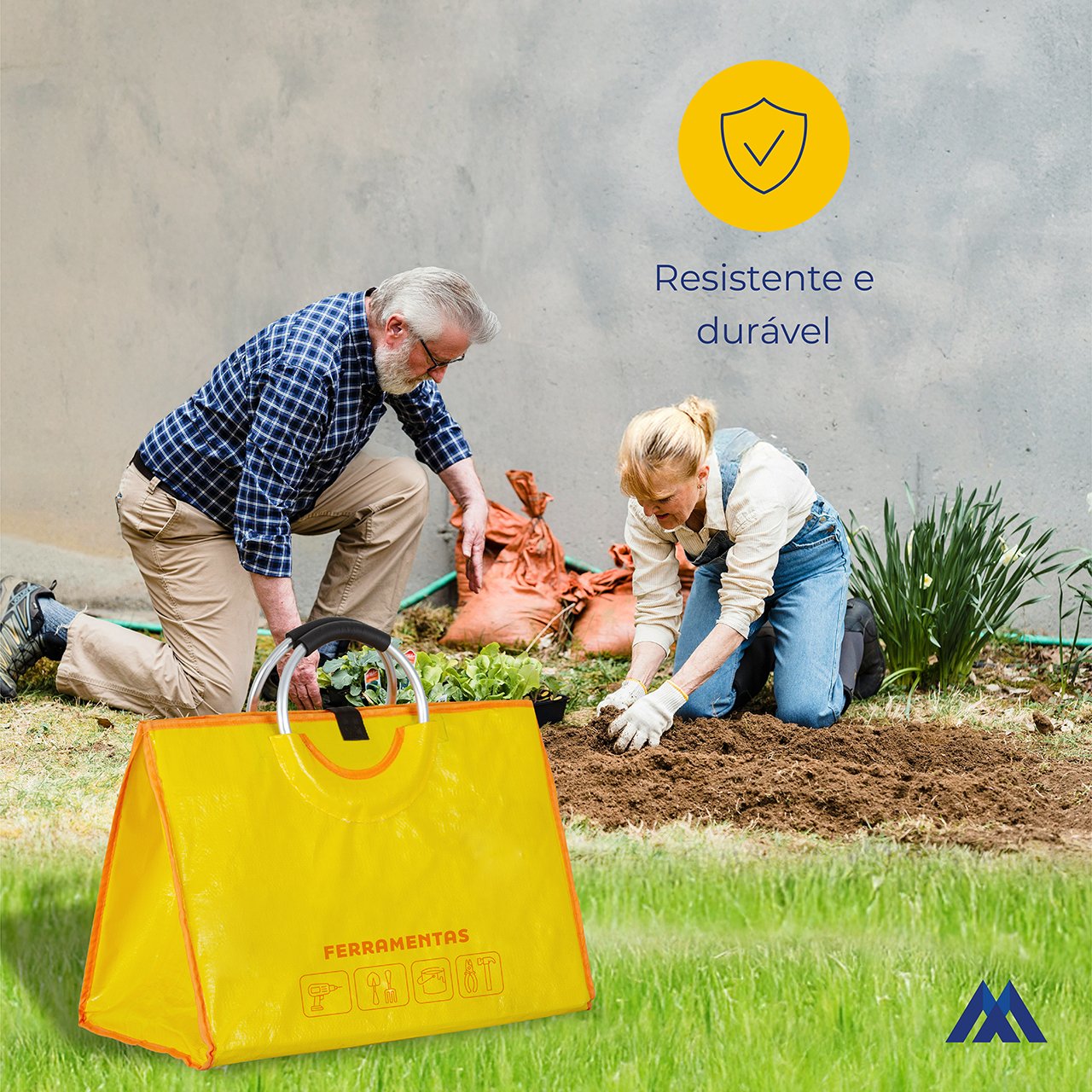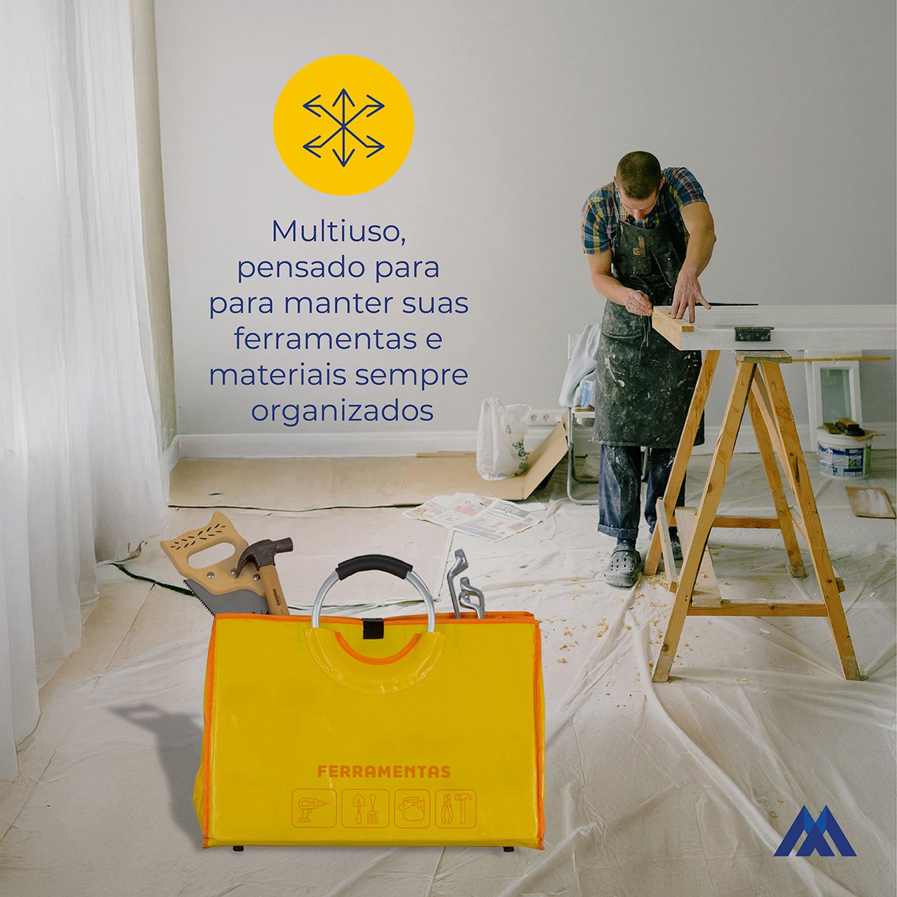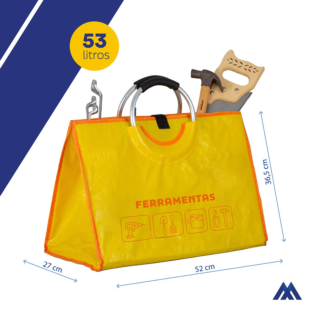 A Sacola Reforçada Para Ferramentas Master Lonas é a escolha ideal para profissionais e entusiastas que buscam praticidade e resistência. Com um design robusto e em um vibrante tom amarelo, esta bolsa não só se destaca pela sua aparência, mas também pela sua funcionalidade.